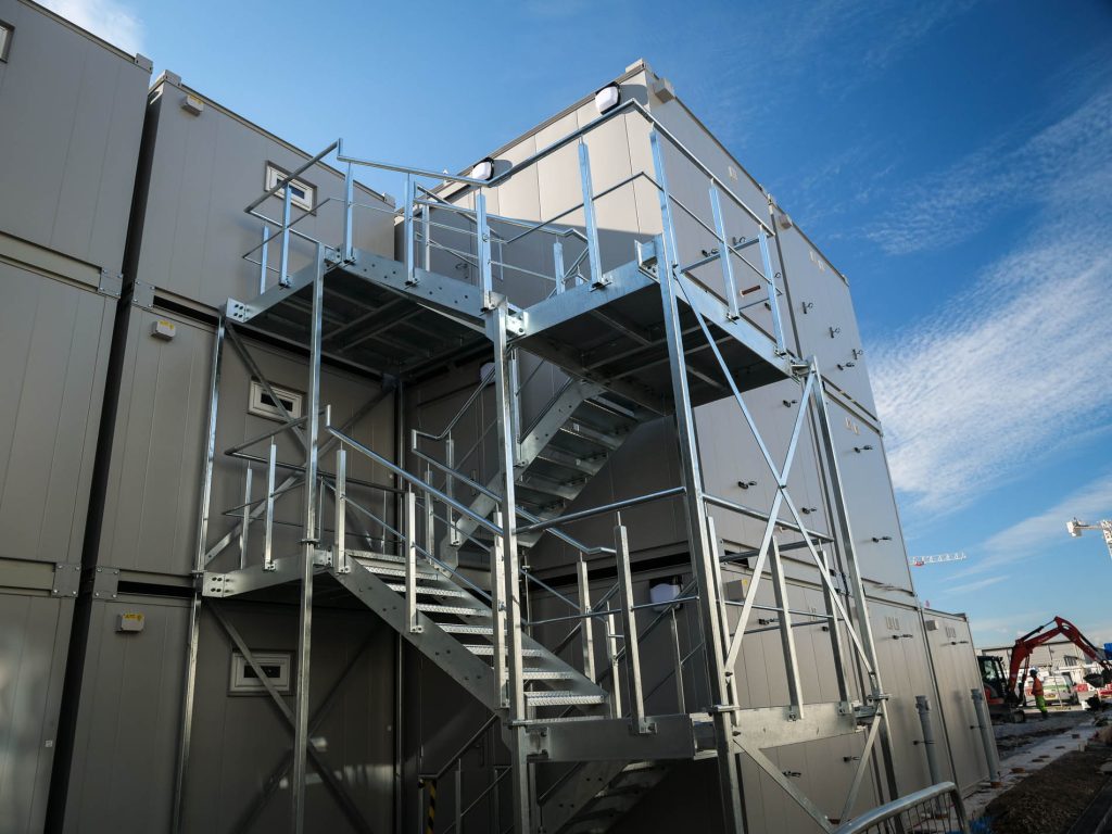 Addressing a requirement for increased site capacity, the fast-track modular construction created three new welfare buildings labelled “East”, “West”, and “North” including a secure bus terminal at the East building. Toilet and shower facilities are also incorporated, with the design and layout replicated across ground, first and second floors. Access is via dedicated external staircases with additional fire escapes installed to ensure safe egress for the building occupants.