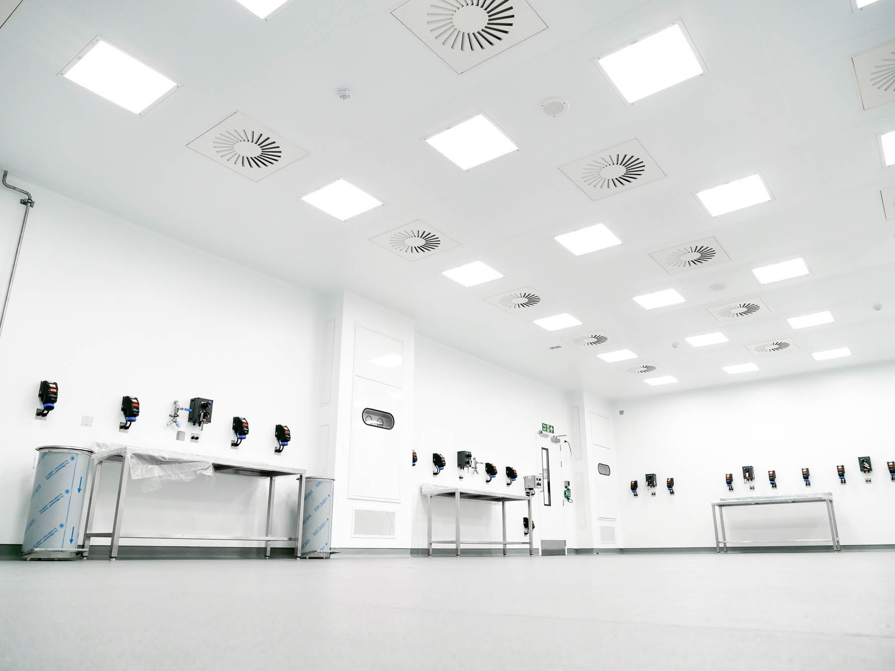 The resulting facility features a fully integrated Building Management System (BMS) and operational GMP ISO 7 cleanroom space, complete with ATEX (explosive atmospheres) rated HVAC, data, lighting and power terminals, personnel and goods airlocks as well as innovative, cleanroom breakout panels for fire escape integrated within the cleanroom wall system.